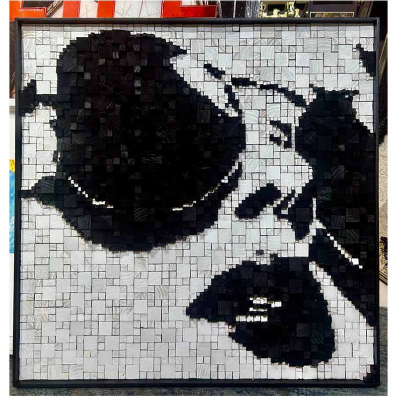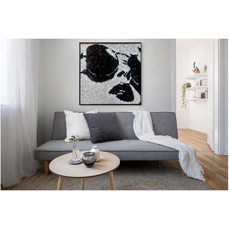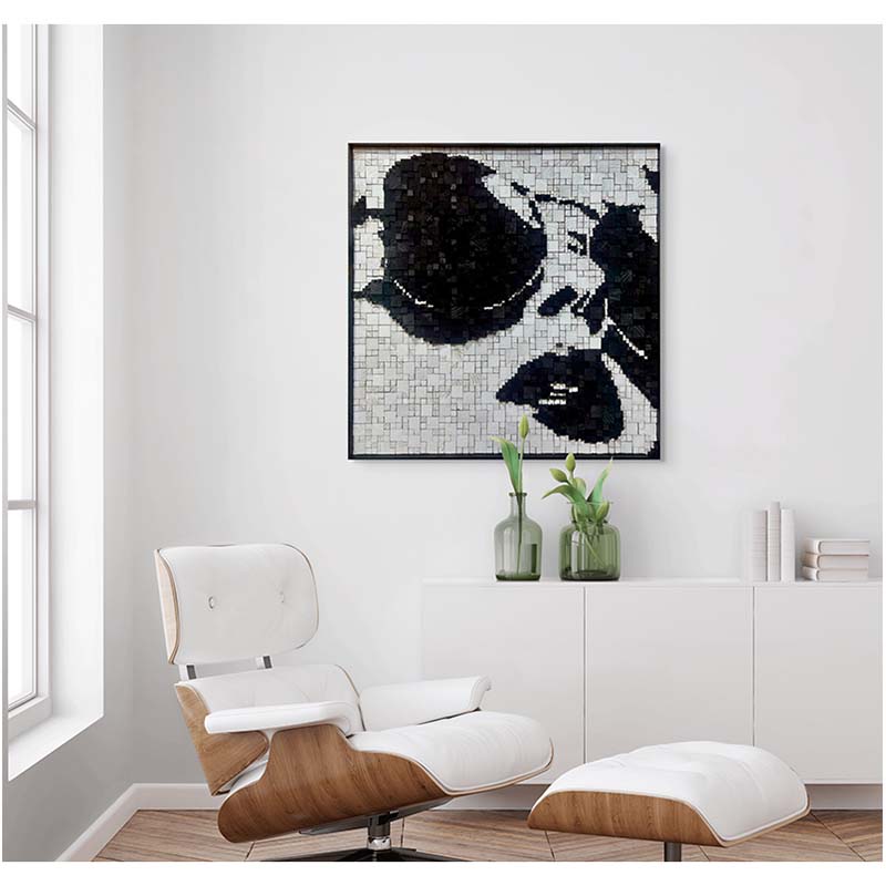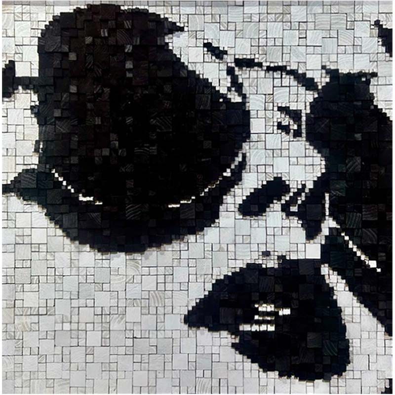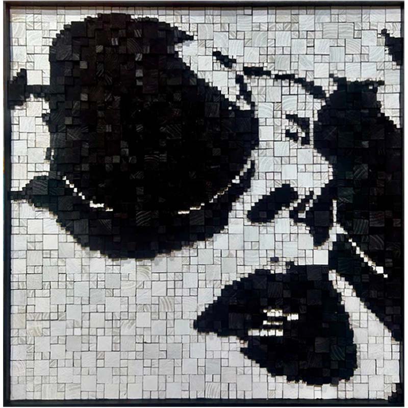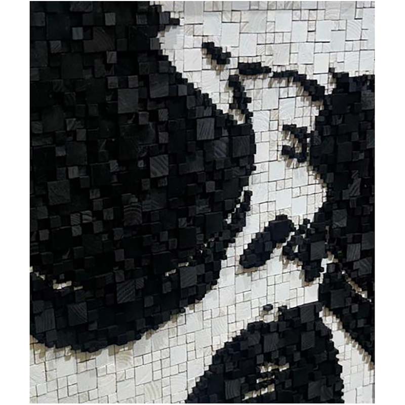 Called by Ian Albertyn is an arresting portrait that speaks in fragments and silence. Composed of countless wooden blocks, the face emerges in stark monochrome, its features partially obscured yet unmistakably present. The close-cropped composition draws the viewer into an intimate exchange, where shadow and light carve emotion from absence as much as form. Each individual block acts as a moment, a memory, a breath—together assembling a powerful sense of inner life.
