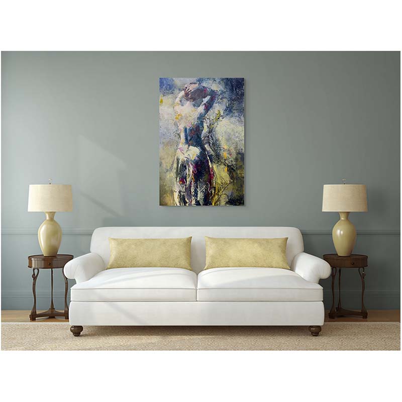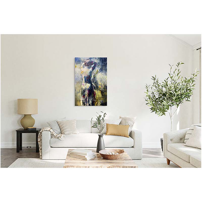 Autumn Dream bathes the figure in an atmospheric haze of colour and texture, where form dissolves into memory. Painted in oil and cold wax, the surface carries a tactile richness, with layers that suggest both time’s passing and the fleeting beauty of a moment. The central figure, seen from behind, is poised in quiet reverie—her presence softened by impressionistic light and abstract gesture. This work balances intimacy and dreamlike distance, evoking the contemplative mood of autumn itself: reflective, tender, and tinged with longing.
